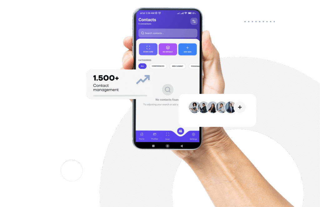 Switch easily between your different profiles: personal, professional, or event-based. So you always show the right identity for the situation. For example, you can share your corporate profile in a business meeting, your portfolio during a client pitch, or your event profile at a conference quickly and without any hassle.